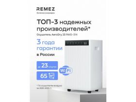 Осушитель воздуха REMEZ, AeroDry Smart, 23л/сутки, 65м², Wi-Fi управление, белый 4370162616