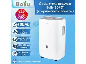 Профессиональный осушитель воздуха Ballu BD70T (100 м2) с дренажной помпой, мобильный напольный осушитель воздуха Балу 103530744982