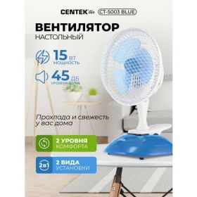 НАЙТИ ВЫГОДНЕЕ - Настольный вентилятор CENTEK CT-5003 19 см синий Ростест (EAC)