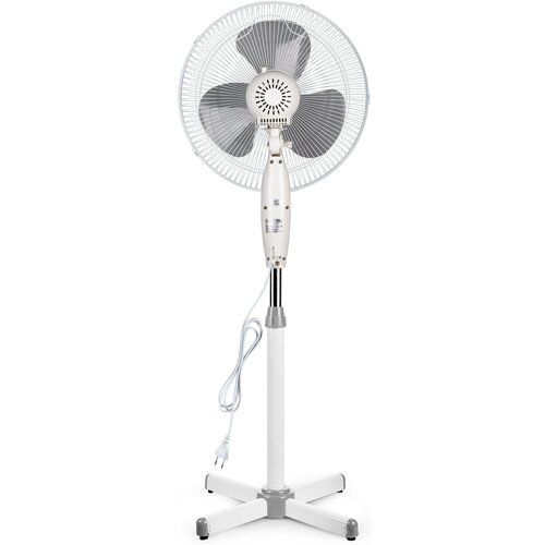Характеристики: - корпус выполнен из металла и пластика - регулировка высоты и угла наклона - 3 скорости вращения - низкий уровень шума - длина сетевого шнура 1,6 м - индикация включения и выбранной мощности - устойчивое положение Коплектация 1. Моторный блок в сборе 2. Контрольная панель 3. Крепежный винт 4. Вал двигателя 5. Гайка-фиксатор задней решетки 6. Задняя решетка 7. Лопасти 8. Передняя решетка 9. Фиксатор лопастей 10. Стопорное кольцо 11. Телескопическая стойка с кольцом фиксации высоты (верхняя трубка) 12. Кольцо декоративное пластиковое 13. Кольцо фиксации высоты 14. Телескопическая стойка с кольцом фиксации высоты (нижняя трубка) 15. Элементы крестообразного основания 16. Винты крепления основания к стойке