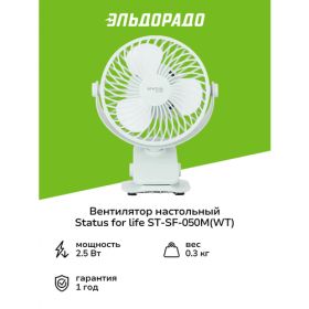 НАЙТИ ВЫГОДНЕЕ - Вентилятор настольный STATUS for life ST-SF-050M(WT)
