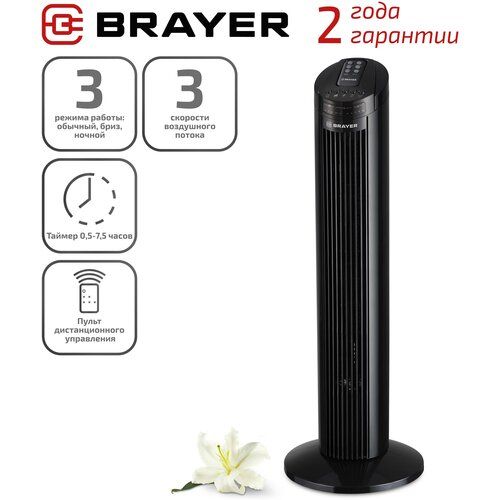 НАЙТИ ВЫГОДНЕЕ - Вентилятор колонный BRAYER BR4958BK 50Вт, пульт, таймер, дисплей