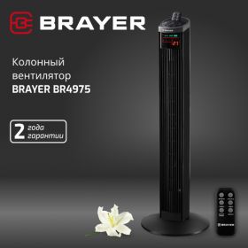 НАЙТИ ВЫГОДНЕЕ - Вентилятор напольный колонный BRAYER BR4975 3 скорости, пульт, дисплей, таймер, регулировка