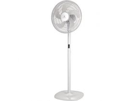 Конструкция оснащена тремя лопастями. Модель отличается управлением механического типа. Уровень безопасности при эксплуатации повышает наличие защитной решетки.