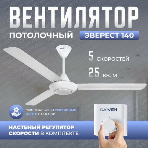 Потолочный вентилятор Эверест White 140 используется для создания прохлады за счёт движения воздуха. Применяется в различных сферах жизнедеятельности человека. Кафе и рестораны, летние веранды и загородные дома, производственные и складские помещения. Данная модель будет эффективна при эксплуатации в помещении площадью 20-25 м2. Вентилятор оснащен двигателем с медной обмоткой и металлическим комплектом лопастей. Регулятор скорости, который входит в комплект поставки, позволяет выбрать одну из пяти скоростей вращения двигателя.