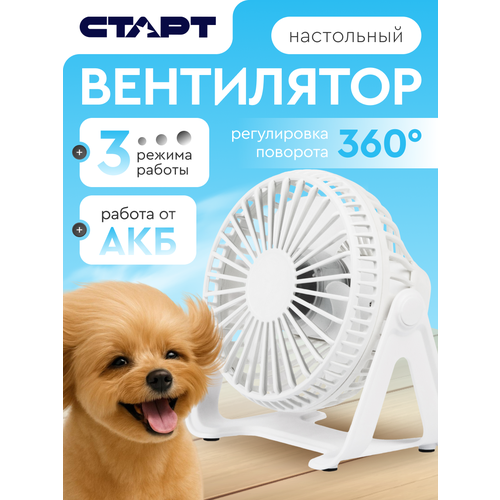 Старт Вентилятор настольный аккумуляторный Настольный вентилятор старт – это компактное и удобное устройство, предназначенное для охлаждения воздуха в помещении. Одним из его ключевых преимуществ является встроенный аккумулятор, что делает его полностью портативным и позволяет размещать вентилятор в любом уголке комнаты без необходимости подключения к электросети. Вентилятор оснащен специальными ножками. Сочетает в себе современный дизайн и функциональность. Устройство оснащено функцией вращения на 360 градусов, что позволяет точно настраивать направление воздушного потока в зависимости от потребностей. Вентилятор прост и интуитивно понятен в использовании. Управление осуществляется с помощью кнопки ON/OFF на задней части корпуса. Устройство подходит для использования в офисе или дома, создавая комфортный микроклимат в спальне, гостиной или на кухне. Кроме того, вентилятор может быть полезен на природе или в путешествиях, где доступ к электропитанию ограничен. Технические характеристики: Напряжение питания: 5 В Номинальная мощность: 4 Вт Аккумулятор: 800 мАч Степень защиты: IP20 Уровень шума: < 35 Дб Размеры: 12,8 × 7,8 × 12,8 см Площадь охлаждения: 4 м2 Материал: металл, пластик Лопасти: 3 шт. Цвет: белый Тэги: вентилятор; вентилятор настольный; вентиляторы; мини вентилятор; вентилятор маленький; портативный вентилятор; вентилятор настольный бытовая техника; настольный вентилятор бытовая техника; вентиляторы настольный; вентилятор на аккумуляторе.