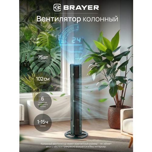 Колонный вентилятор BRAYER BR4976 - современное и функциональное устройство, которое поможет создать комфортный микроклимат в вашем доме.