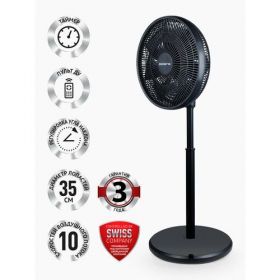 Вентилятор работает от сети и имеет мощность 30 Вт, что обеспечивает высокую производительность. Диаметр лопастей составляет 40 см, что позволяет создавать мощный воздушный поток.