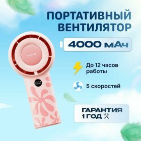 НАЙТИ ВЫГОДНЕЕ - Портативный вентилятор ручной SOLOVE 4000mAh 5 Speed Type-C LED Display (F16) Pink