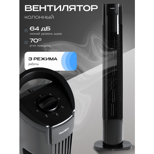 НАЙТИ ВЫГОДНЕЕ - Колонный вентилятор, напольный, 3-скоростной, мощность 50Вт, черный