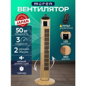 НАЙТИ ВЫГОДНЕЕ - Вентилятор Moren колонный механический, 3 скорости, дисплей, пульт ДУ, 50 Вт, 102 см