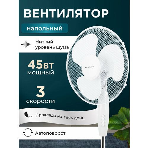 НАЙТИ ВЫГОДНЕЕ - Вентилятор напольный, 3 режима скорости, белый, 45 Вт, 120 см, автоповорот