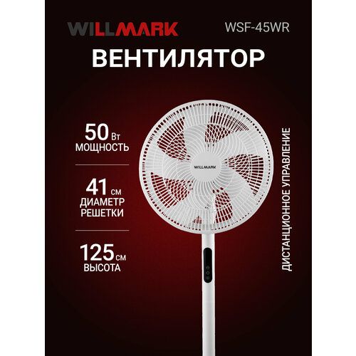 НАЙТИ ВЫГОДНЕЕ - Вентилятор WILLMARK WSF-45WR (напольный,1250мм/410мм/50Вт,3 ск, пульт ДУ,1шт./упак, белый)