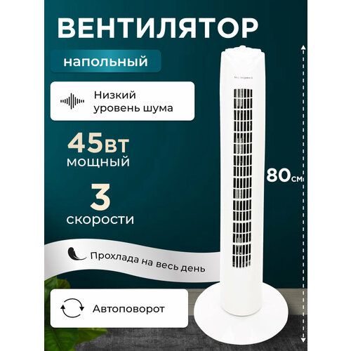 НАЙТИ ВЫГОДНЕЕ - Вентилятор колонный, напольный, 3 режима скорости, 45 Вт, белый, автоповорот, 80 см