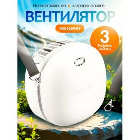 НАЙТИ ВЫГОДНЕЕ - Вентилятор поясной портативный с ремешком, нашейный, бесшумный, на прищепке, F37 LL-1 White белый