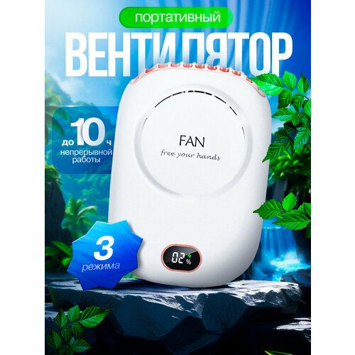 НАЙТИ ВЫГОДНЕЕ - Вентилятор портативный бесшумный на прищепке на шею, поясной, настольный, мини беспроводной FAN White белый с ремешком