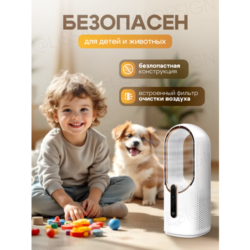 Настольный безлопастной вентилятор – это идеальное решение для всех, кто хочет создать комфортную атмосферу дома, на даче или в офисе. Портативная малошумная, беспроводная модель станет незаменимым помощником летом. Она создаст освежающую прохладу. Одним из основных преимуществ этой бытовой техники является ее безопасность. Место забора воздуха в мобильном гаджете закрыто защитной решеткой, но в отличие от традиционных приборов наш комнатный вентилятор не имеет лопастей и сделан из высококачественного пластика. Все это делает устройство безопасным для маленьких детей и домашних животных. Портативность - это еще одно важное преимущество этого товара. Прибор может работать, как от встроенного мощного аккумулятора в любом помещении, так и от сети. Вентилятор имеет регулировку скорости обдува и сенсорное управление без кнопки. 3 режима работы позволяют настроить поток воздуха под ваши потребности. Современный мотор обеспечивает практически бесшумную работу устройства, что позволяет наслаждаться прохладой в спальне, кухне, детской комнате. Дизайн прибора прост и элегантен. Холодный белый цвет вертикального корпуса смотрится стильно и подходит к любому интерьеру. Благодаря своим компактным размерам он может стоять не только на полу, но и легко помещаться на кухонном столе и прикроватном столике. Это полезный подарок для вас и ваших близких. Вентилятор поможет создать приятный микроклимат в любой комнате, и станет стильным дополнением к вашему интерьеру.