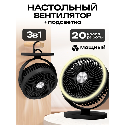 НАЙТИ ВЫГОДНЕЕ - Мини вентилятор настольный бесшумный с охлаждением, WALKER, кондиционер, напольный, подсветка, подвесной крючок, поворотный, рег. наклона, черный