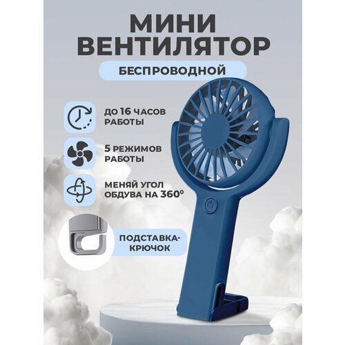 НАЙТИ ВЫГОДНЕЕ - Вентилятор, 5 режимов, поворотный, с крючком-подставкой, синий // вентилятор ручной, вентилятор настольный