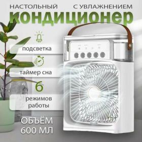 Увлажнитель воздуха — это полезное решение для создания уютной атмосферы в доме. Этот увлажнитель сочетает в себе две важные функции: увлажнитель и вентилятор-кондиционер для воздуха, что делает его незаменимым помощником в повседневной жизни. С бесшумной работой освежитель позволяет насладиться комфортным микроклиматом в доме. Увлажнение воздуха помогает поддерживать оптимальный уровень влажности, что особенно важно в помещениях, особенно в отопительный период. Объем резервуара позволяет использовать мини увлажнитель до 6 часов, что делает его использование практичным. Таким образом, мини кондиционер увлажнитель можно использовать в спальне, гостиной или детской. Настольный увлажнитель легко подключается к сети, а его стильный дизайн гармонично впишется в любой интерьер. Этот электрический вентилятор увлажнитель станет прекрасным дополнением для дома, создавая атмосферу уюта и спокойствия.