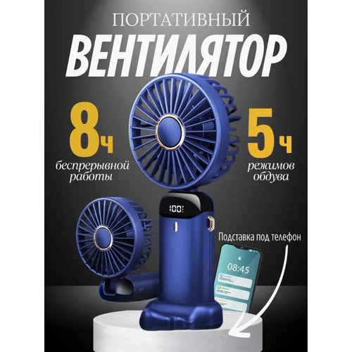 НАЙТИ ВЫГОДНЕЕ - Портативный вентилятор OEM, USB, влагозащитный, 5 режимов, синий