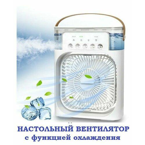 НАЙТИ ВЫГОДНЕЕ - Портативный настольный вентилятор охладитель воздуха с подсветкой 7 цветов белый