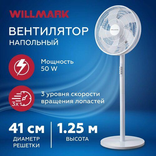 Вид вентилятора Лопастный (осевой). Тип установки Напольный. Максимальная высота, м 1,25. Мощность, Вт 50 W. Количество скоростей 3. Уровень шума 52 дБ. Тип управления механическое. Автоматический поворот корпуса. Угол поворота (градус) 90°. Регулировка наклона. Угол наклона (градус) 60°. Регулировка высоты. Материал корпуса пластик. Количество лопастей 5. Питание от сети. Напряжение питания, В 220 В. Длина сетевого кабеля, м 1,5. Основание усиленное. Габариты изделия, мм (Ш*Г*В) 400*370*1250. Цвет белый