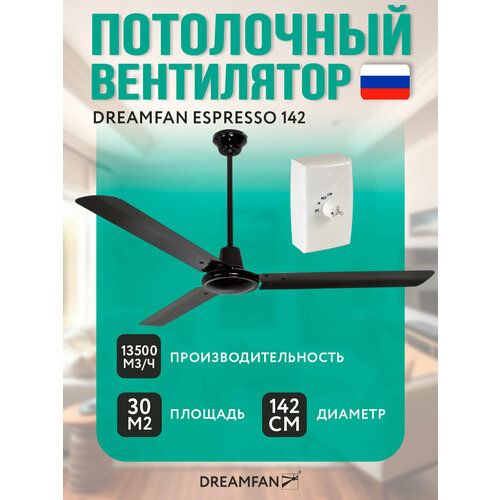 Потолочный вентилятор Dreamfan Espresso 142 (51142DFN) предназначен для бесшумного охлаждения воздуха в бытовом помещении любого назначения, а также для рекуперации тепла в промышленном помещении.