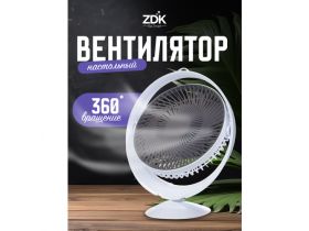 Вентилятор настольный ZDK HJ-5070, черный/белый, 2 скорости, вращение 360 градусов 103693629810
