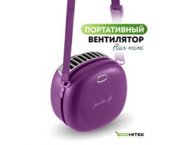 Мини вентилятор на шею и пояс EcoHitek, беспроводной, аккумуляторный, для лица и спины, портативный, фиолетовый 4984642654