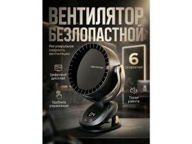 Бесшумный USB вентилятор настольный без лопастей, с 6 скоростями, мощный портативный дизайн с зажимом, черный 5429462617