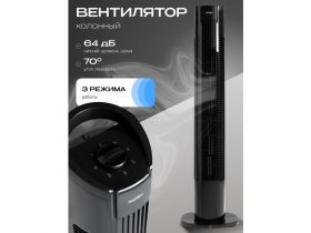 Колонный вентилятор, напольный, 3-скоростной, мощность 50Вт, черный 103723683374
