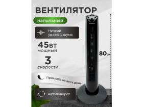 Вентилятор колонный, напольный, 3 режима скорости, 45 Вт, черный, автоповорот, 80 см 4373206992