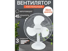Вентилятор настольный MilWorks механический, 3 скорости, 40 Вт, белый, автоповорот 4373223772