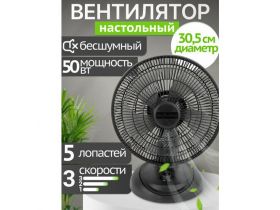 Вентилятор настольный MilWorks механический, 3 скорости, 5 лопастей, 50 Вт, черный 4373503584