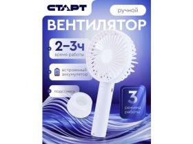 Вентилятор портативный с аккумулятором старт, зарядка через USB ,3 скорости, белый 4314497103