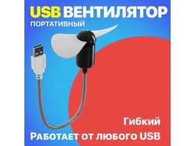 Компактный настольный мини USB вентилятор GSMIN Fan гибкий портативный, работает от PowerBank, Ноутбука, Компьютера (Черный) 102373317184
