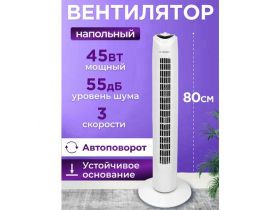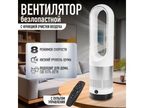 Вентилятор напольный бесшумный безлопастной / с пультом управления, 8 скоростей, поворотный, питание от сети, белый 103818722509