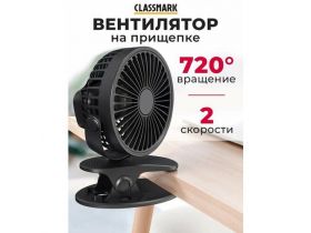 Вентилятор настольный Classmark на прищепке, от USB и аккумулятора, 2 режима, портативный, черный 4433251322