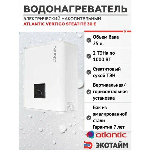 НАЙТИ ВЫГОДНЕЕ - Водонагреватель накопительный 25 литров Atlantic Vertigo Steatite 30 E
