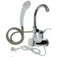 Электрический проточный водонагреватель с краном легко подключается к трубе с холодной водой, Включите в сеть и готов к использованию. Заявленная мощность - 3кВт, он водонепроницаем для капель воды, имеет высокий гусак, что к примеру, удобно когда вам приходится мыть кастрюли.