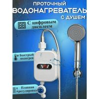 НАЙТИ ВЫГОДНЕЕ - Проточный водонагреватель настенный электрический с душевой лейкой и дисплеем.