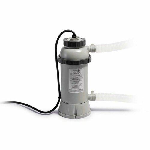Проточный водонагреватель INTEX 28684 для ускорения нагрева воды в бассейне. Водонагреватель подключается к фильтрующему насосу производительностью от 1893 до 9464 л/ч. Оборудован автоматом УЗО (защита от поражения током), сенсором уровня воды и термостатом. Мощность 3 кВт, необходима розетка на 15А. Для ускорения процесса нагрева рекомендуется накрыть бассейн покрывалом. Температура воды в бассейне должна быть не ниже 16°C и не более 35°C. Примерное время увеличения температуры воды на 1°C - 1-2 ч. Рекомендован для моделей: Easy Set Pool: до 457 см и Frame Pools: до 366 см
