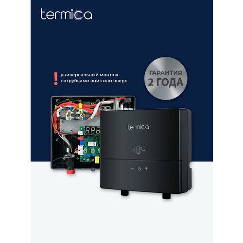 Электрические проточные водонагреватели TERMICA NIXY предназначены для приготовления горячей воды в бытовых, санитарных и гигиенических целях. В устройстве используется инновационный теплообменник с т.н. "сухим нагревом", в котором отсутствует прямой контакт нагревательных элементов с водой, что предотвращает образование накипи и продлевает срок службы водонагревателя. Автоматика прибора обеспечивает плавную регулировку мощности, в зависимости от текущего протока, позволяет добиться максимального комфорта нагрева и избежать ожогов горячей водой при эксплуатации.