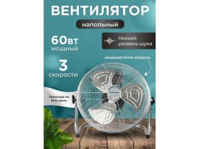 Вентилятор напольный, механический, хромированный, 3 скорости, 3 лопасти, 60 Вт, 54 см, серебристый 103813965899