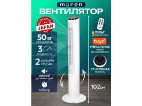Вентилятор Moren колонный сенсорный, 3 скорости, со смартфона, пульт ДУ, 50 Вт, 102 см, белый 103813893041