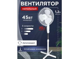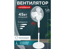 Вентилятор напольный, механический, 3 скорости, 3 лопасти, 45 Вт, 120 см, белый 103813973210