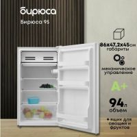 Холодильник компактный Бирюса M90 представлен в металлическом серебристом корпусе весом 18.5 кг с размерами 47.2x85x45 см. Камера на 93 л оснащена тремя полками, ящиком для хранения фруктов и овощей, а также небольшим морозильным отсеком на 1 л, в котором продукты замораживаются до -6°С. Предусматривается наличие капельной системы разморозки.
