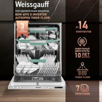 Полноразмерная посудомоечная машина Weissgauff, оснащенная проекцией времени до окончания цикла работы на пол, инверторным двигателем и функцией автоматического открытия дверцы, не только удивит богатством функциональных решений, но и обеспечит идеальный результат: 3 корзины позволят расположить посуду оптимальным образом для достижения наилучшего качества мытья, а наличие 8 программ для мытья позволит подобрать оптимальный режим в зависимости от количества посуды и степени загрязнения.