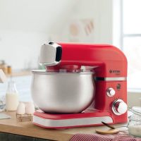 Миксер планетарный BBK KBM1042 красный, объем чаши 4 л, максимальная мощность 1000 Вт, 6 скоростей работы, импульсный режим, сменные насадки
